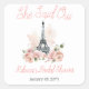 Pegatina Cuadrada Dijo Que Oui Ducha De Novias De Flores Rosadas En
