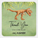 Fun and cute thank you birthday stickers with an illustration of a T-rex, perfect for a kid's birthday party. Illustrated and designed by Patricia Alvarez.
