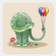 Pegatina Cuadrada Dinosaurio con globos Cumpleaños