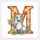Pegatina Cuadrada Dinosaurio de juguete y letra M con patrón