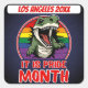 Pegatina con hermoso ilustracion de dinosaurio sobre el fondo de los colores de la bandera arcoiris. El texto de la tipografía dice "Es el mes del orgullo". ¡Puedes personalizar de ciudad y de año! Visita nuestra tienda para más diseños.