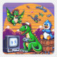 Pegatina Cuadrada Dinosaurios de 8 bits jugando videojuegos