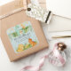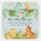 "Etiqueta cuadrada de dirección de devolución de la ducha de follaje de dinosaurio bebé lindo". Dirección de devolución combinada con un sello de sobre decorativo para su Baby Shower, anuncios de nacimiento y notas de agradecimiento. Acuarela de lindos dinosaurios celebrando al nuevo bebé en una jungla de follaje verde. Arte de HeyIAmAlice, diseñado gráficamente por la artista licenciada internacionalmente, Audrey Jeanne Roberts. Derechos de autor.