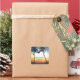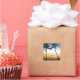 Los atractivos pegatinas tropicales de retorno cuentan con fotografías de puesta de sol con palmeras a lo largo de la costa y el horizonte al fondo. El saludo de "aloha" puede ser borrado o cambiado antes de la compra, si así lo desea.