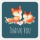 Gracias pegatinas con un dibujo de 2 zorros rojos. Uno de pie sobre el otro tendido. Dibujado con acuarela.
