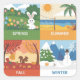 Explore la belleza de la naturaleza con este adorable diseño educativo que presenta "Las Cuatro Estaciones". Perfecto tanto para los niños como para los amantes de la naturaleza, este bonito ilustracion muestra los vibrantes cambios en primavera, verano, otoño e invierno. Con coloridas y divertidas escenas de flores florecientes, playas soleadas, hojas caídas y paisajes nevados, es una forma divertida y atractiva de aprender sobre las estaciones! Ideal para aulas, guarderías o como un regalo encantador.