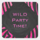 Pegatina Cuadrada Diseño de cebra en negro y rosa caliente monograma