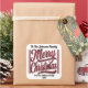 Un vibrante pegatina cuadrado muestra la frase alegre Feliz Navidad en letras brillantes.