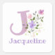 Pegatina Cuadrada Diseño inicial de J Plus Name Jacqueline & Flowers