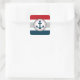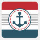 Diseño náutico con decoración de ancla en forma redonda sobre fondo rayado azul, rojo, gris y blanco