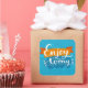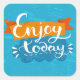 Disfruta hoy - cita positiva, caligrafía escrita a mano sobre fondo de color gris azul y cinta naranja. Diseño de tipografía vectorial para tarjetas, camisetas, posters y contenido de medios sociales. | Bigstock® - Todos los derechos reservados.