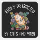 Pegatina Cuadrada Distrado Fácilmente Por Gatos Y Yarn
