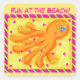 Encontrarás muchos usos para este naranja colorido y pegatina amarillo para recordarte la playa y las palabras de personalizable "Diversión en la playa" que puedes cambiar a un nombre o a tus propias palabras. Este arte es genial para niños y adultos con un estilo artístico llamativo. El pulpo caprichoso es naranja y tiene un fondo de textura amarilla y está rodeado de corazones rosados calientes. El diseño está enmarcado por una fucsia rosa caliente y un borde de rayas verde lima. Esto hace un gran regalo y es ideal para una casa en la playa. Se ha creado con el arte original de Phyllis Dobbs y es vibrante en los colores amarillo, naranja y rosa caliente. Personalizable completo para su disfrute.