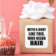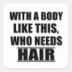 Si te gustan las citas sarcásticas graciosas o los grandes diseños humorísticos, este lema original "¿Con un cuerpo como este, quién necesita pelo? " es para ti. ¡Es un gran regalo para tu familia, amigos o para ti mismo! Este diseño es ideal para todo aquel que ame el sarcasmo y el humor. Si te gusta esta cita graciosa, echa un vistazo a otras obras similares en la tienda Omitay. Mantente a salvo y gracias por apoyar a un artista local.