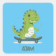 Pegatina Cuadrada Divertido Skateboarding Dinosaur Con Nombre Para N