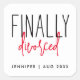 Pegatina Cuadrada Divorcio Simple Finalmente Divertido Blanco y Negr
