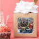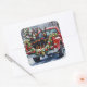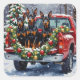 Pegatina Cuadrada Doberman Pinscher Christmas Red Truck Holiday