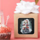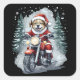 Pegatina Cuadrada Dog Santa Motorcycle Black Background
