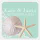 Compliquen nuestras invitaciones a la espuma marina de color verde Ocean Romance con este dólar de arena y pegatina de pez estrella. Cambiar el texto según sea necesario.