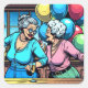 Pegatina Cuadrada Dos dulces ancianas en un bar que baila cumpleaños
