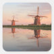 Pegatina Cuadrada Dos molinos de viento con reflexión al atardecer