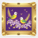 Pegatina Cuadrada Dos pájaros con marco de oro ordenado