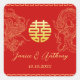 Pegatina Cuadrada Dragón fénix, boda chino de oro rojo