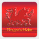 Pegatina Cuadrada Dragón rojo de aspecto Grabado en relieve sobre ef