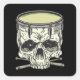 Un diseño impresionante con un tambor de arena en forma de cráneo, con palos de tambor.