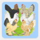 Seis gallinas hermosas del d'Uccle se muestran aquí: cuello colombino y de oro rojo, azul marrón del fleur del mille, del blanco, del azul del uno mismo, de color de ante.