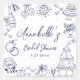 Pegatinas Quirky Bridal Con Ducha Personalizada. Estos divertidos y divertidos pegatinas de duchas de novias cuadradas presentan un peculiar ilustracion de doodle que rodea el diseño, todo de temática azul marino. Elementos como una torre de champán, pastel de boda, bola de discoteca, corazones, campanas bodas, anillos, cámaras y más crean una vibración caprichosa y festiva. "[Nombre de la novia] Bridal Shower" y la fecha se muestran de forma elegante debajo de la obra de arte en una mezcla de escritura manuscrita y tipos de letra simples en azul marino, añadiendo un toque elegante y personalizado. Este diseño, completamente personalizable, le permite ajustar el texto y la distribución para que se ajuste a su tema de la ducha de novia. Perfecto para sellar sobres, decorar favores o agregar un acento atrevido y personal a su papelería de eventos, estos pegatinas le aportan un toque de alegría y sofisticación a su celebración.