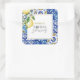 Pegatina Cuadrada Ducha de Novia de Baldosa Azul Mediterránea y Limó