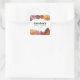 Esta pegatina cuadrada presenta un vibrante borde floral retro con flores audaces en rosa, naranja y amarillo sobre un fondo blanco. El diseño botánico caprichoso se combina con una tipografía inspirada en los años 70 para un estilo divertido y nostálgico. Una forma sofisticada de personalizar los regalos de la ducha de la novia o como una adición única a los sobres de los invitados de su celebración. Personalice con el nombre de la novia y la fecha del evento para un recuerdo considerado.