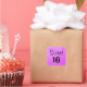 Dulce pegatina de 16 cuadrados con brillantes purpurinas púrpura glam y negrita escritura negra.