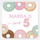 Pegatina Cuadrada Dulce cumpleaños de Donut | Fiesta infantil colori