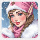 Pegatina Cuadrada Dulce Elfo Rosa de Navidad