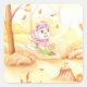 Pegatina Cuadrada Dulce paseo otoñal por el bosque