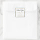 Boda de rayas clásicas azul y blanco polvo Relieve metalizado oro faux gracias pegatina cuadrado. Estos elegantes stickers de bodas de agradecimiento incluyen un elegante borde de Relieve metalizado de oro falso que enmarca sus nombres y mensajes de agradecimiento conjuntos en la tipografía moderna. Diseñado por Thisisnotme©