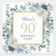 Pegatina Cuadrada Dusty Blue Floral 90th Birthday Favor