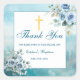 A refined dusty blue floral baptism design perfect for expressing gratitude after a special religious celebration. The gentle watercolor background, delicate florals, and cross create a heartfelt and meaningful look for a baby boy’s baptism.