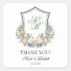 Pegatina Cuadrada Dusty Blue Floral Escudo Boda Gracias