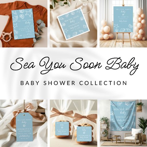 Sea You Soon Baby Dusty Blue Coastal Baby Shower Diseñado por Jen Mercado