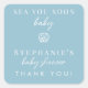 Pegatina Cuadrada Dusty Blue Sea Pronto Gracias Baby Shower