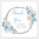 Pegatina Cuadrada Dusty Blue Silver Elegant Flowers Birthday Party