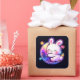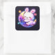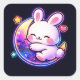 Pegatina Cuadrada Easter Bunny Sleeping on Galaxy Moon Neon Sticker