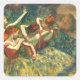 Cuatro bailarinas. Edgar Degas. Retrato bonito en tonos pastel rojos y verdes. Ballerinas con faldas verdes van a clase. Los chicas enderezan sus vestidos. Reproducción de obras famosas de imágenes artísticas de dominio público.