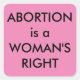 Pegatina Cuadrada El aborto es la mejor elección rosada de una mujer