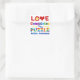 Cita del autismo inspirador, el amor completa el rompecabezas, con coloridas piezas de rompecabezas del autismo y una hermosa mariposa para apoyar a los niños autistas y sus familias.