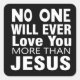 El amor por el Pegatina de la Plaza Jesús. En un mundo lleno de opciones y opiniones, puede ser difícil encontrar algo en lo que todos puedan estar de acuerdo. Pero una cosa es segura: Jesús te ama y nadie te amará más que Él. Su amor interminable por nosotros es un gran recordatorio de que nunca estamos solos. Ya sea que busques un pegatina cristiano para mostrar tu fe o un recordatorio para mantener tus ojos en Jesús, este pegatina "Nadie te amará nunca más que Jesús" es perfecto para ti! Es una gran manera de mostrar al mundo que crees en el poder del amor de Cristo.