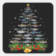 Pegatina Cuadrada El árbol de Navidad del tiburón tiburón ama los re